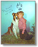 - This is my first episode from "Lassie", 1957. $40 #4 - I'm dressed to go "to the city" in this one. $40 #5 - Here is the Martin family, 1958. $40 #6 - Lassie and me in our kitchen. $40 #7 - This is a vintage collectible the producers of "Lassie" sent to fans in 1964. Once these are gone, there are no more! $50. I also have a color photo of this available for $40 #8 - One of a few publicity shots with me hugging Lassie. $40 #9 - Baby and me about 1963. $40 #10 & 10a - Mary Badham is best known for her role as Scout in "To Kill a Mockingbird". I worked with her in 1965 in the film "This Property is Condemned", which starred Natalie Wood and Robert Redford. Mary and I will both sign this "behind-the-scenes" shot for you. $50 #11 - Hey, we all have to grow up sometime! Here I am with my dog, Nino and with my favorite "Lassie", Baby. $40 #12